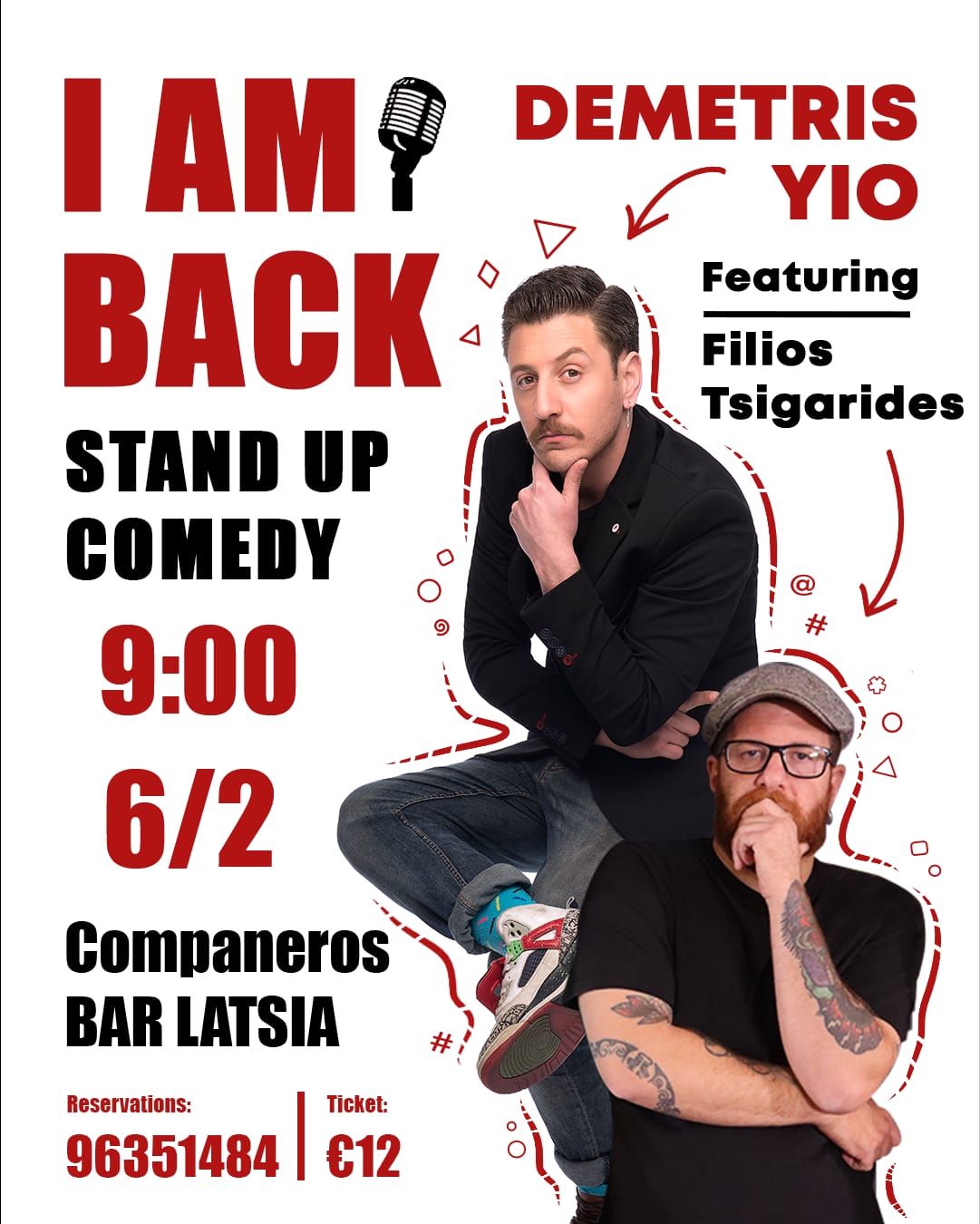 Get ready for a night of laughter as Demetris Yio makes his highly anticipated return to the stage! A well-known figure in the Cypriot comedy scene and an accomplished actor, Demetris is bringing his unique wit and energy back to Latsia for a special performance you won't want to miss.