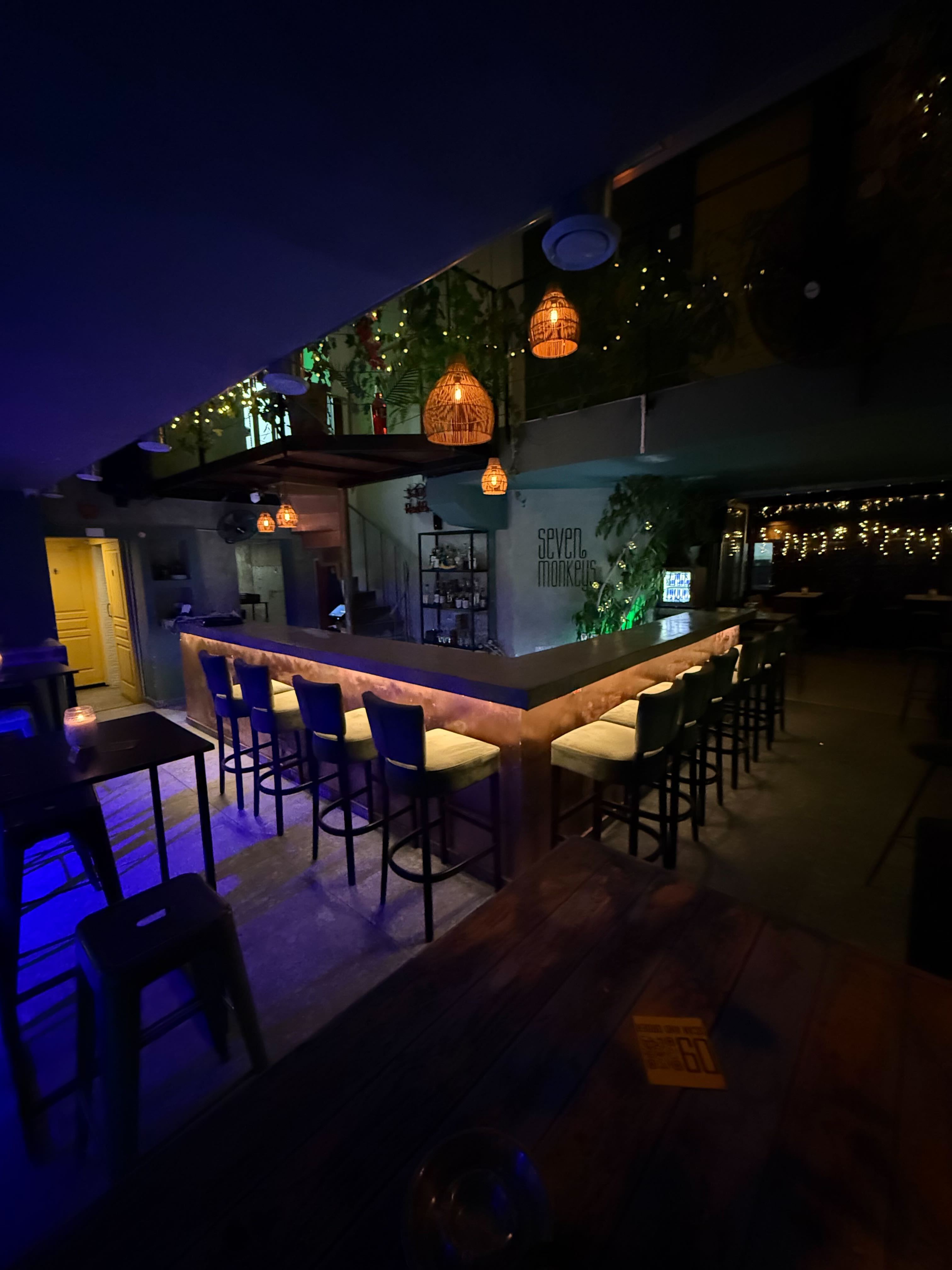 An elevated bar experience, where craftsmanship meets ambiance. Meticulously curated cocktails, artisanal homemade sodas, and a selection of finger-licking dishes. Seven Monkeys offers a haven for those who appreciate quality, atmosphere.